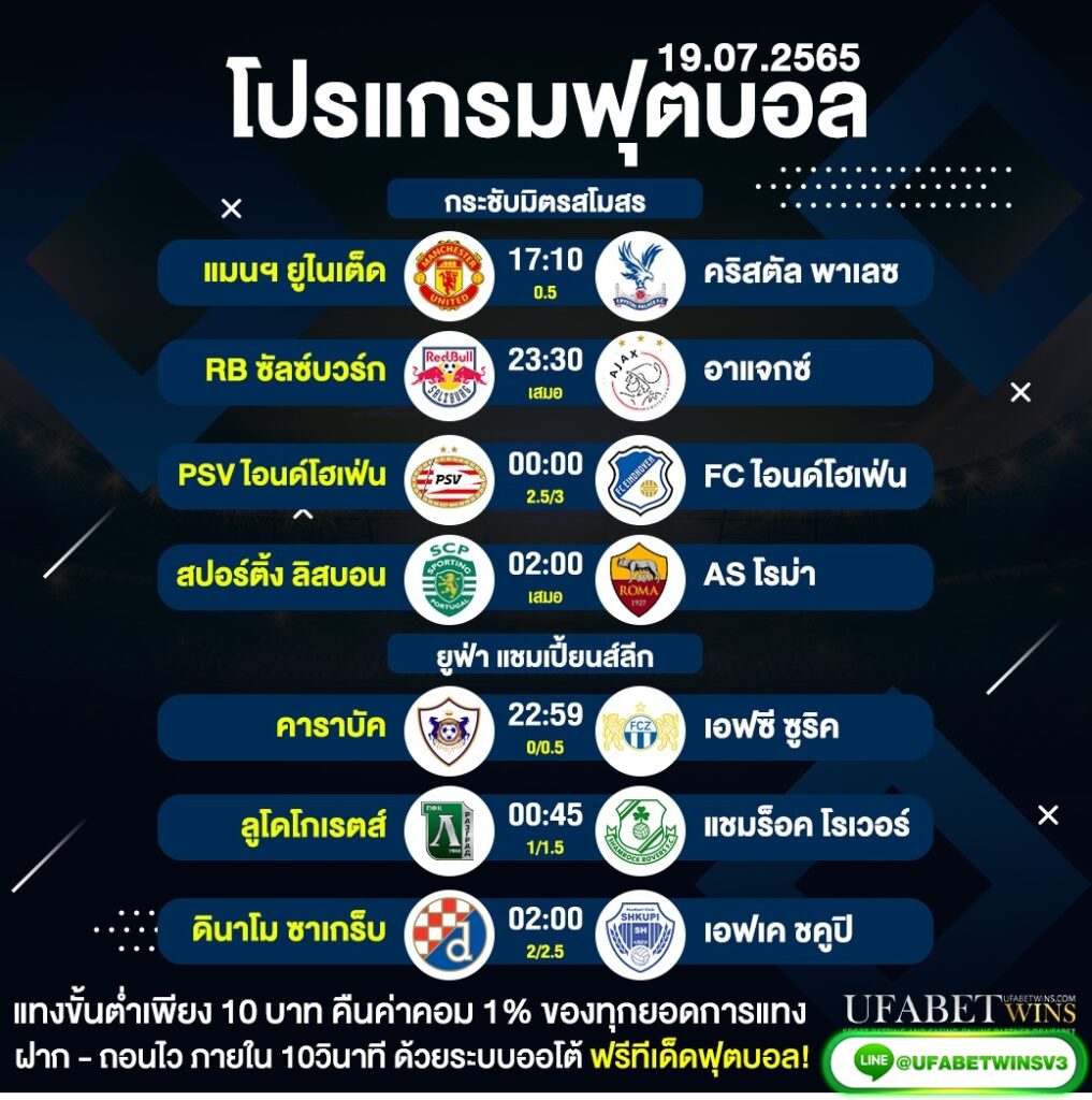 โปรแกรมบอลประจำวันที่ 19/07/2565
