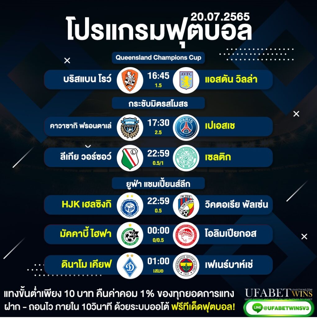 โปรแกรม ทีเด็ดบอลประจำวันที่ 20/07/2565