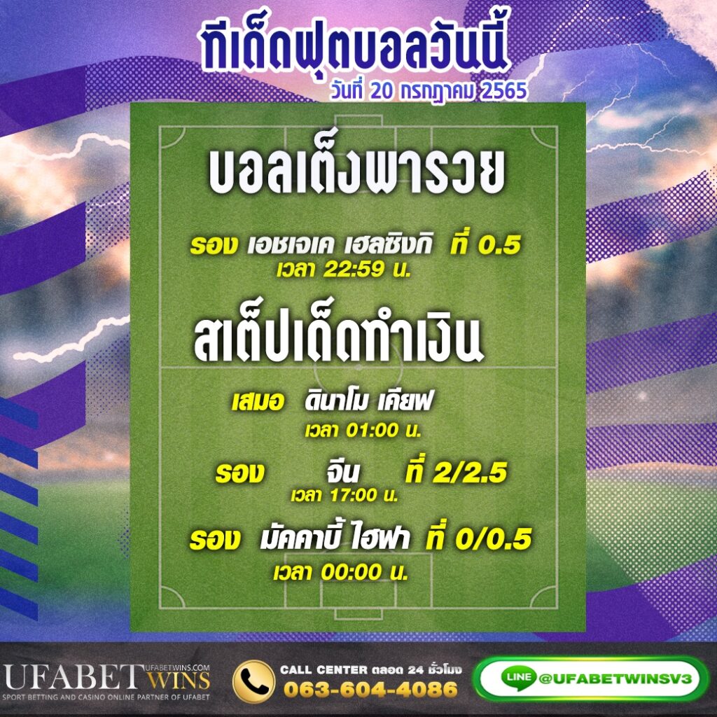 ทีเด็ดบอลประจำวันที่ 20/07/2565 เพิ่มเติม